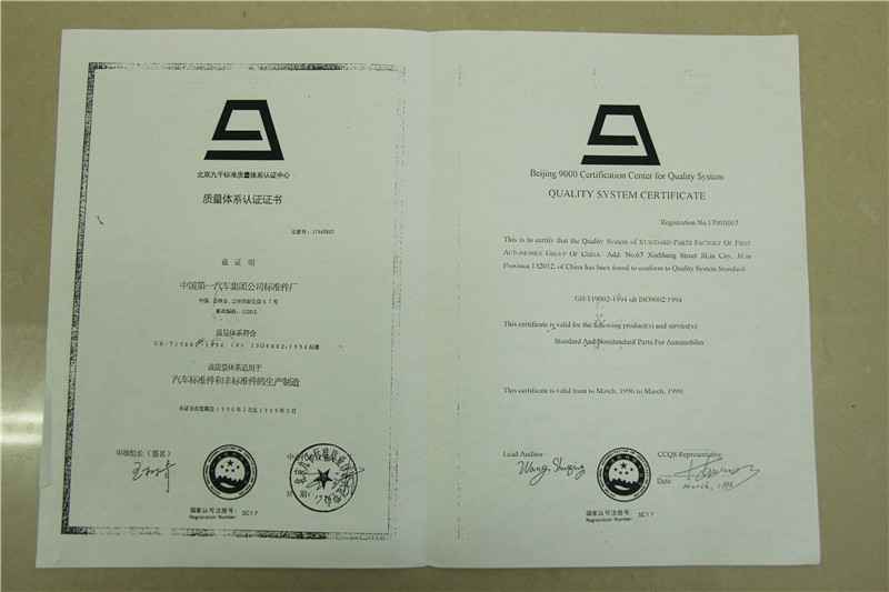 1996年首次获得质量体系认证书